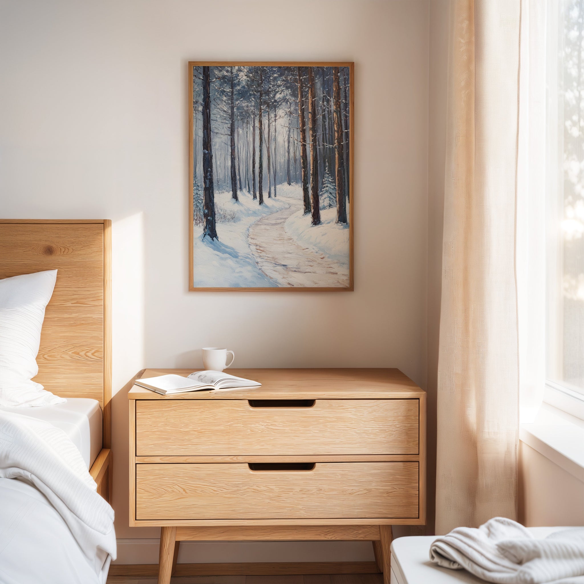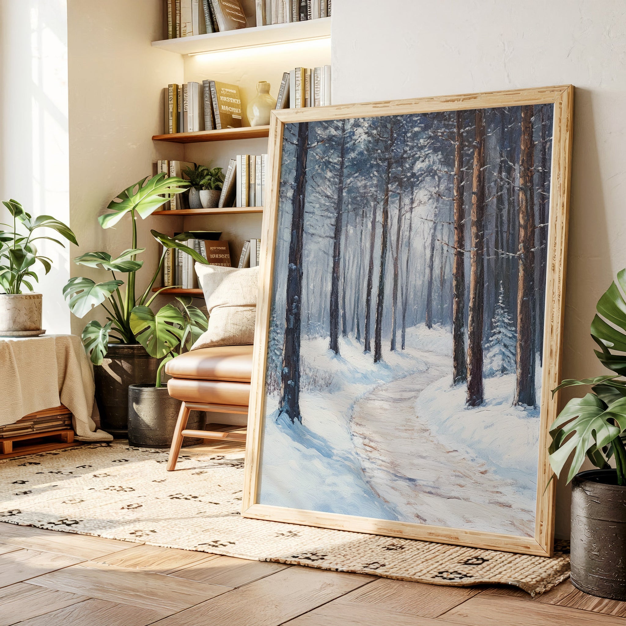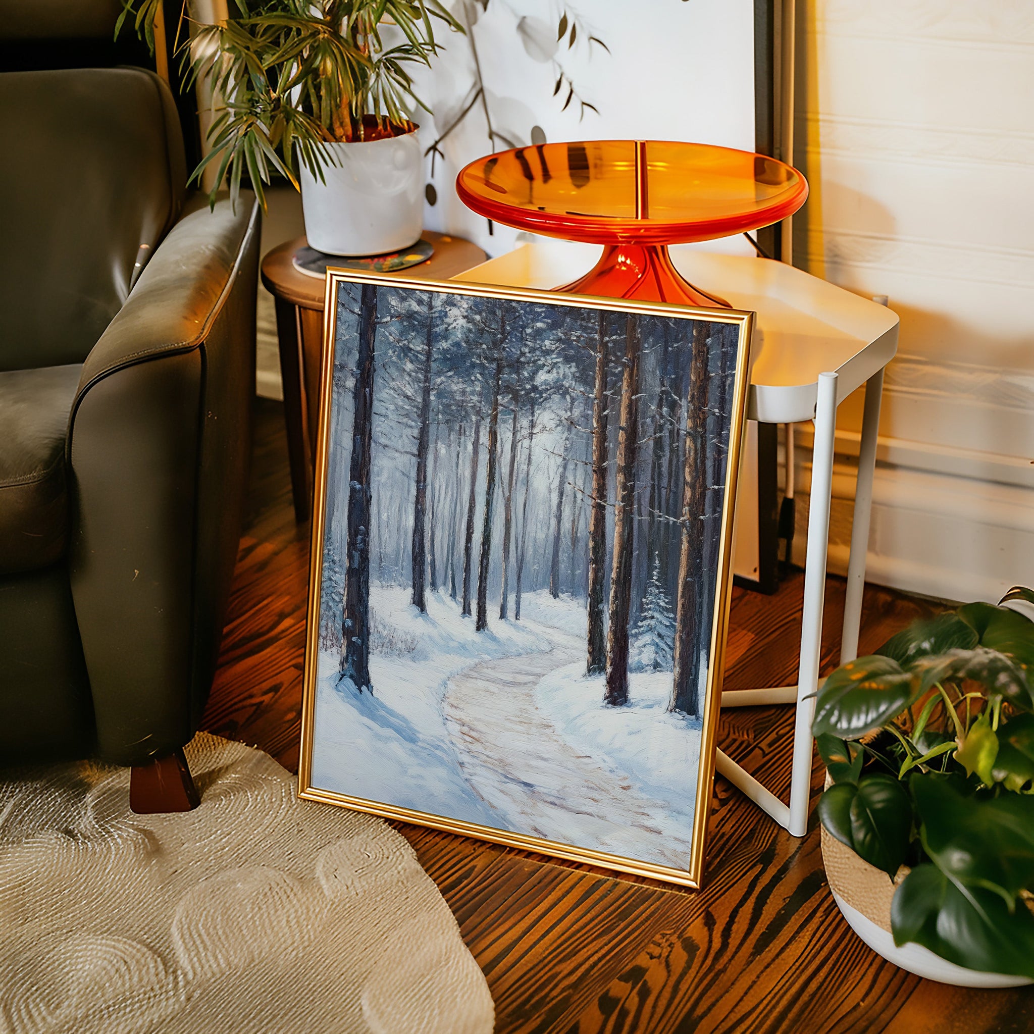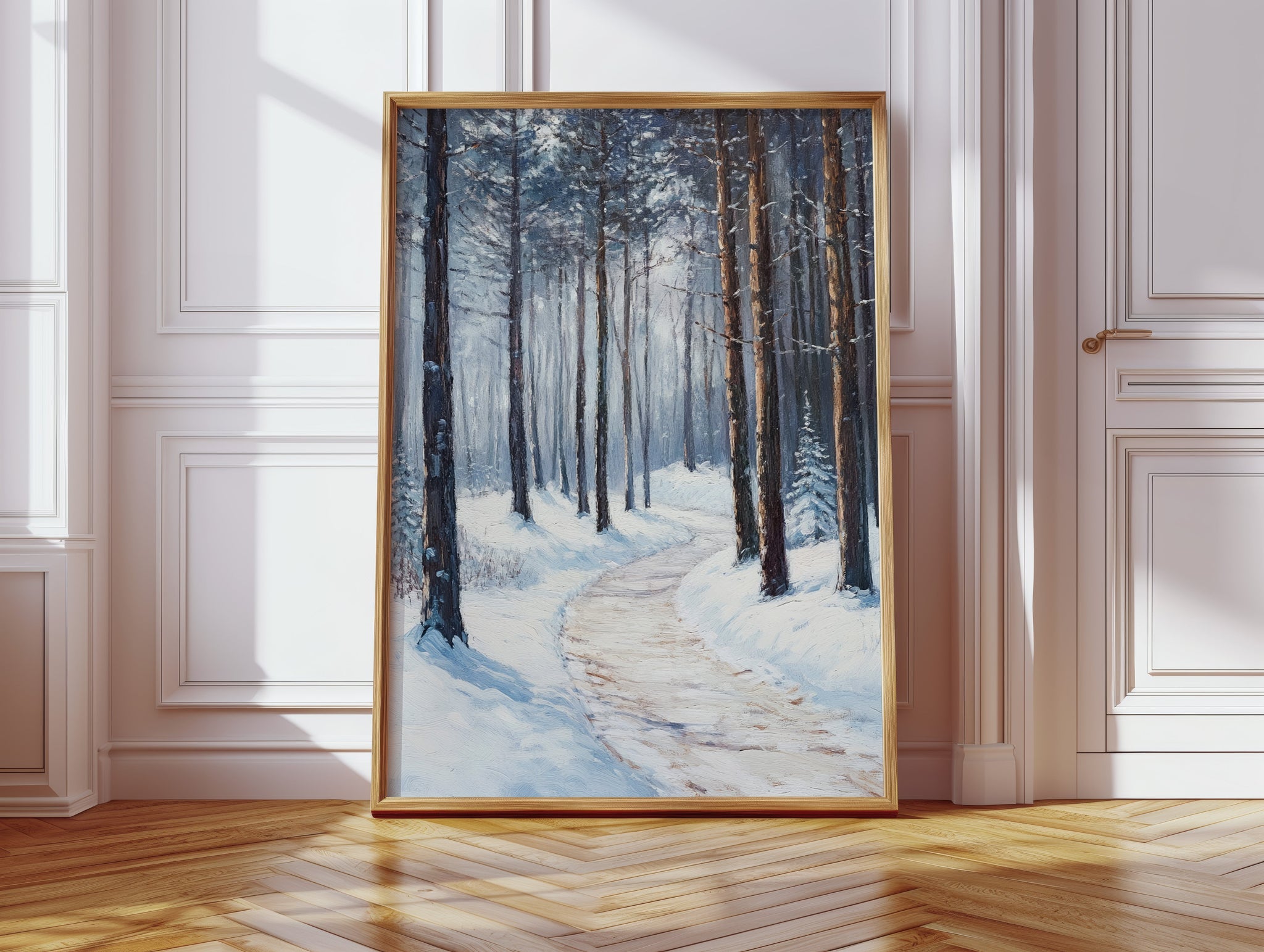 Inspired by the tranquility of winter landscapes, this artwork embodies the peacefulness of nature at rest. The artist's skilled brushwork and attention to detail bring the scene to life, making it feel as though you're stepping into a winter wonderland.
